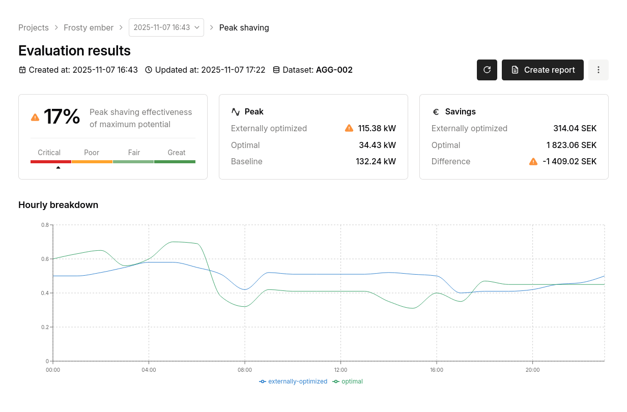 Helios is an evaluation framework that automates the complex task of monitoring energy optimization performance. It standardizes parameters and continuously analyzes the aggregator's performance, giving you an objective, data-driven view of your optimization vendors without the manual overhead.
